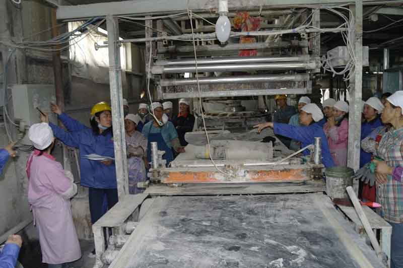 車間現(xiàn)場(chǎng)培訓(xùn)為三個(gè)班同崗位員工集體培訓(xùn),按各自崗位的不同分為三組,甲班班長王國行負(fù)責(zé)機(jī)頭、配料、調(diào)漿;乙班班長負(fù)責(zé)一橫、爐工;丙班班長負(fù)責(zé)二橫、巡窯。每個(gè)崗位員工講述自己在自己崗位怎樣操作、在操作中應(yīng)該注意安全問題。講述流程為:介紹自己來自那個(gè)生產(chǎn)線、那個(gè)班、自己的姓名、負(fù)責(zé)那個(gè)崗位,講述自己在操作中應(yīng)該注意事項(xiàng),各組負(fù)責(zé)班長補(bǔ)充講解,其他員工補(bǔ)充該崗位知識(shí)。自我介紹是為了讓大家互相認(rèn)識(shí)生產(chǎn)線的家人們,增強(qiáng)員工的存在感;通過講解部分,可以看出崗位員工自身對(duì)于各崗位的認(rèn)知度;班長補(bǔ)充部分補(bǔ)充該員工沒有提到的內(nèi)容;通過其他崗位對(duì)于該崗位的認(rèn)知補(bǔ)充崗位知識(shí)。講述結(jié)束后,由我?guī)ьI(lǐng)大家到每個(gè)崗位所負(fù)責(zé)的機(jī)械設(shè)備發(fā)問,我給自己起名叫十萬個(gè)為什么,發(fā)問內(nèi)容:這是什么機(jī)器?是干啥用的?主要作用是什么?平常生產(chǎn)要注意什么安全問題?我們員工自身要注意什么問題?回答方式:采用誰先舉手,誰回答。回答內(nèi)容:我是誰,哪個(gè)班的,在哪個(gè)崗位,主要負(fù)責(zé)什么內(nèi)容,然后回答問題。員工回答完畢,班長補(bǔ)充。之后由我用自己的理解給大家講述,詢問班長對(duì)不對(duì),加深員工對(duì)該崗位的認(rèn)識(shí)。