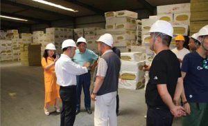 觀摩團一行先后參觀了諾克年產5萬噸A級防火巖棉外墻保溫板生產基地;公司產品展廳,深入實地考察金龍年產4000萬平方米純天然紙面石膏板。參觀過程中,集團公司董事長向觀摩團詳細介紹了企業發展情況、核心產品、核心競爭力等公司概況,并對金龍公司國內首創的發明專利“復合網格筋層高強度紙面石膏板”及諾克公司A級防火巖棉外墻保溫板生產項目做了詳細介紹。
