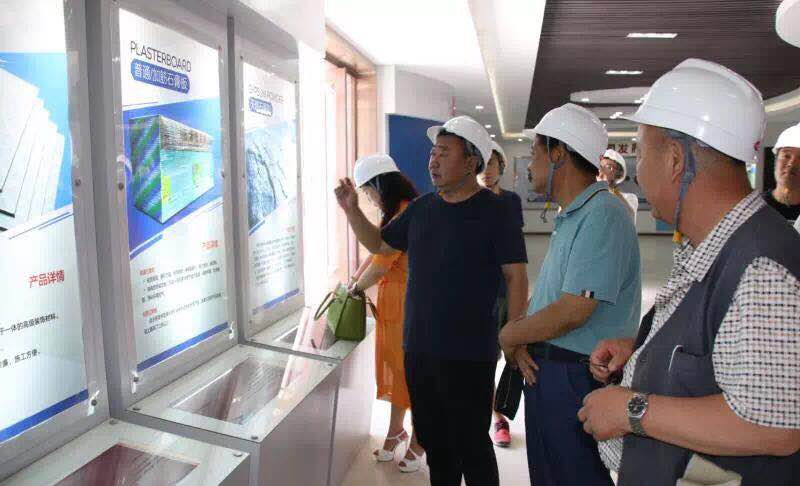通過實地參觀考察,看到了公司的整體實力,對公司的產品研發能力、制造水平等各方面給予了充分的肯定。特別是公司自主研發的“復合網格筋層紙面石膏板”專利產品,獨有的發明專利技術,很快得到了觀摩團一行領導的認可。