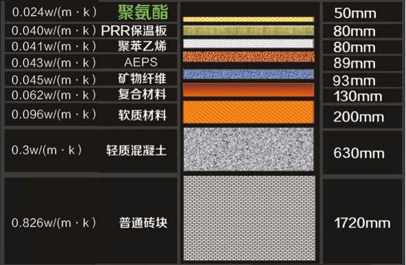 (2)聚氨酯導熱系數≤0.024W/(m?k),分布于PRR保溫板上下表面,具有優異的保溫隔熱效果。