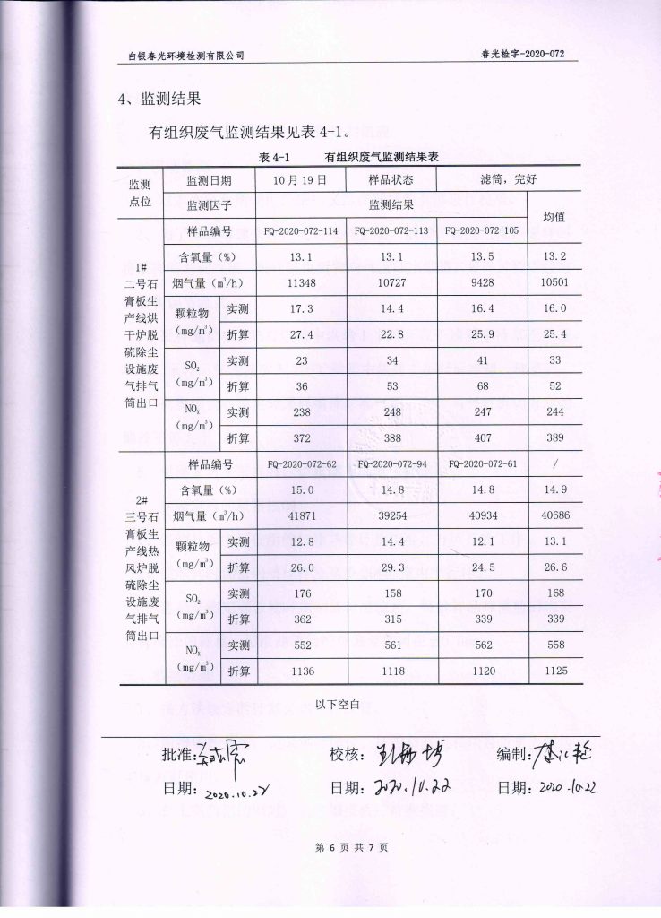 金龍公司2020年10月環保自行監測結果公示