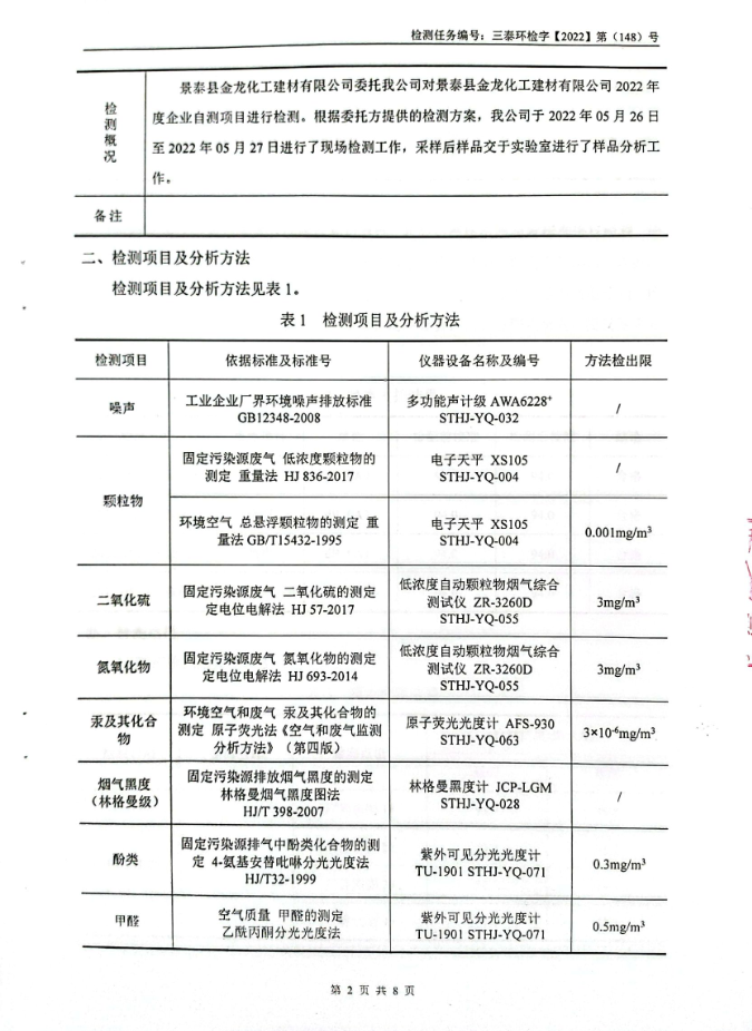 金龍公司2022年度環保自行監測結果公示