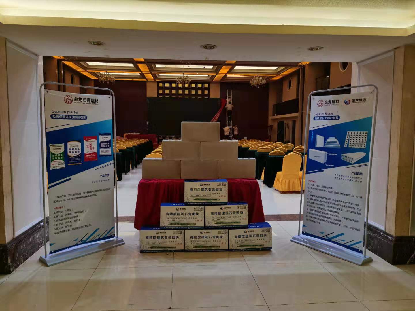 ? ? ? ? 總經(jīng)理劉佳在現(xiàn)場介紹了我公司網(wǎng)格筋層紙面石膏板、A級(jí)防火巖棉保溫板、輕質(zhì)礦棉吸聲板、PVC貼面板、穿孔石膏板、PRR保溫板、抹灰石膏、高精度石膏砌塊等產(chǎn)品,尤其是抹灰石膏和高精度砌塊今年新上的兩個(gè)產(chǎn)品引起了各級(jí)領(lǐng)導(dǎo)們的關(guān)注。劉佳說:“石膏砌塊與傳統(tǒng)加氣塊相比,產(chǎn)品的強(qiáng)度、精度更高,減少了抹灰工序,消除了鼓包、裂縫的擔(dān)憂,整體造價(jià)更低!”通過劉總對(duì)高精度石膏砌塊的介紹以及與傳統(tǒng)產(chǎn)品的對(duì)比,獲得了各級(jí)領(lǐng)導(dǎo)對(duì)酒龍公司石膏砌塊項(xiàng)目一致的肯定。