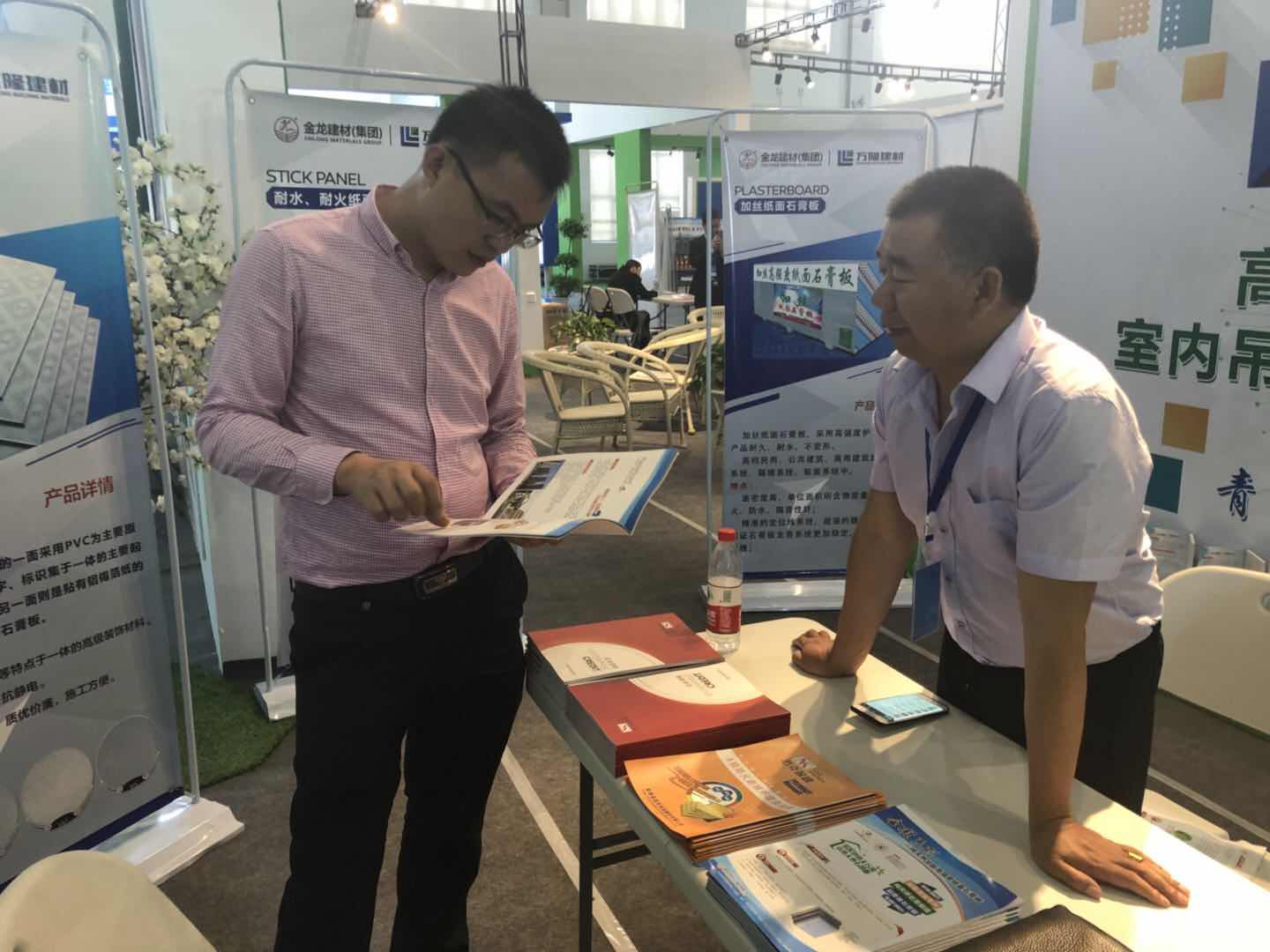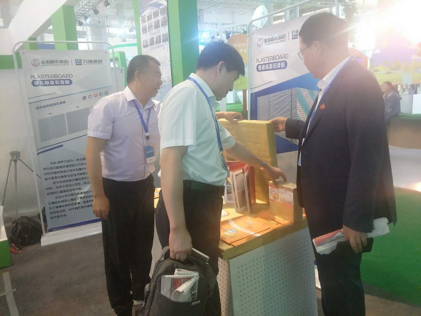]]>本次展示會,金龍公司所帶去純天然紙面石膏板系列產品、A級防火外墻巖棉保溫板等兩個大類產品成功亮相展示會。河西區域市場劉經理向參觀訪客對公司國內首創的發明專利“復合網格筋層”超高強度紙面石膏板及A級防火巖棉外墻保溫板生產項目做了詳細介紹。