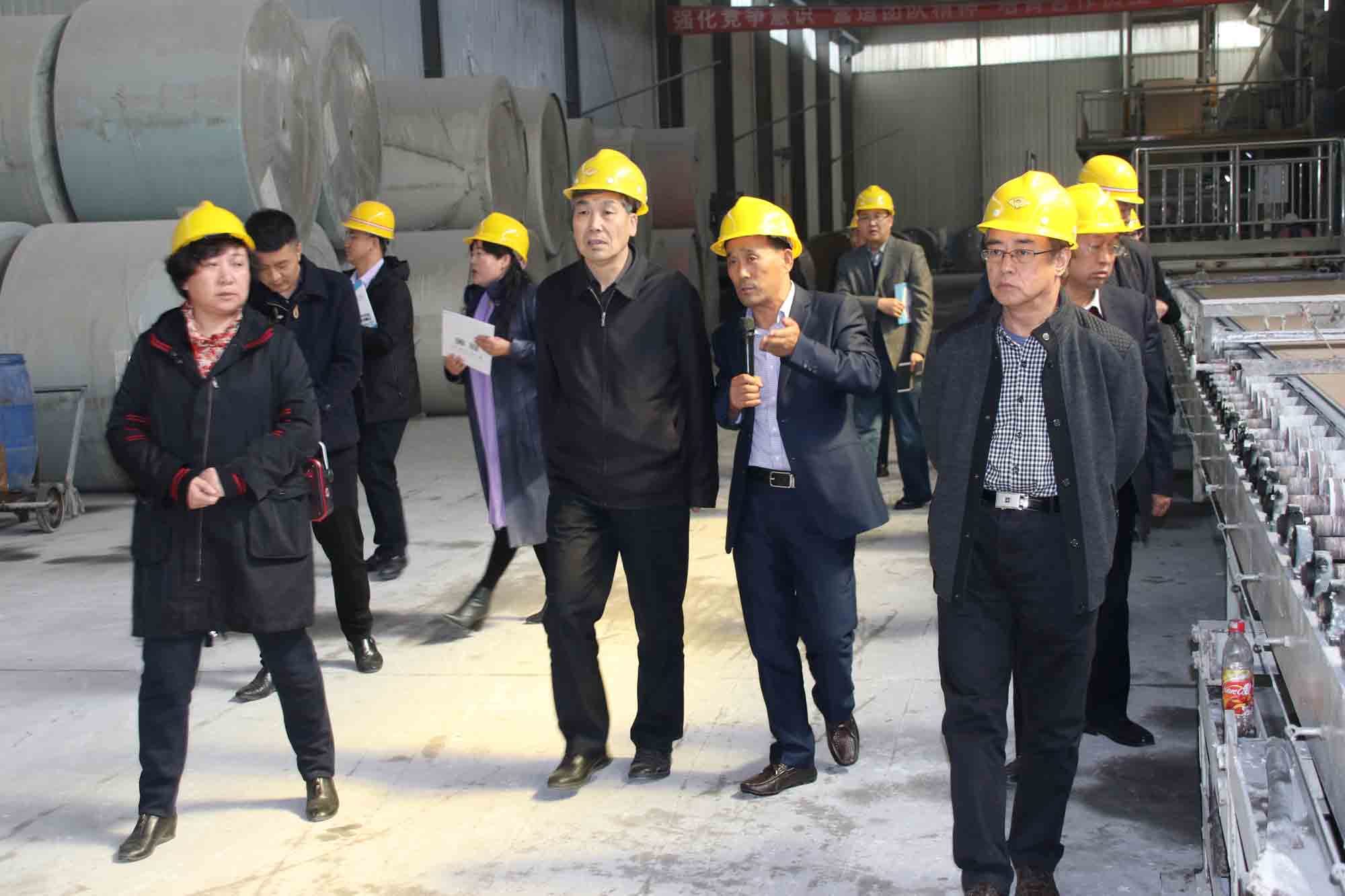 省政協領導一行參觀了產品展廳、年產4000萬平方米復合網格筋層純天然紙面石膏板生產基地。參觀過程中,馬董向來訪客人重點介紹了企業的發展情況、核心產品、產品競爭力等方面的情況,并對我公司復合網格筋層純天然紙面石膏板做了詳細的講解,公司的原料主要是天然礦產石膏,該產品綠色、健康、無污染,是國家重點綠色環保新型產業。